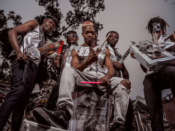 Also known as “a crushing sound”, which is the literal translation of the band’s name. In Lingala, Kin’gongolo Kiniata refers to the rattling sound of empty oil barrels once rolled through the streets of Kinshasa during power cuts in the not-so-distant past. In more musical terms, Kin’Gongolo Kiniata can be described as experimental Afropop in which the energy of Western punk collides with rhythms rooted in countries south of the Sahara.