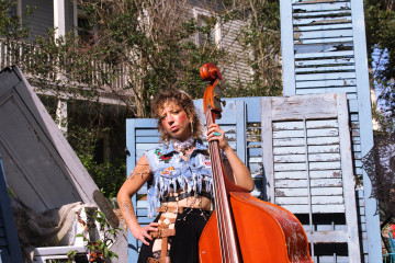 She calls her style gutter jazz, and her profession bass slayer. Johanna Rose, singer, songwriter, upright bassist and, like practically every musician from New Orleans, street performer, creates a sound that lives somewhere between stardom and life in the gutter. Smoky, sensual, chaotic and balancing on the line between beauty and rawness. Her songs land hard and warm without warning, carried by a voice that cuts one moment and softens the next, and by bass lines that feel at once like a heartbeat and a high-wire act. It is New Orleans jazz with a crooked grin: rooted in the tradition of original American music, yet always itching to break free from it.
